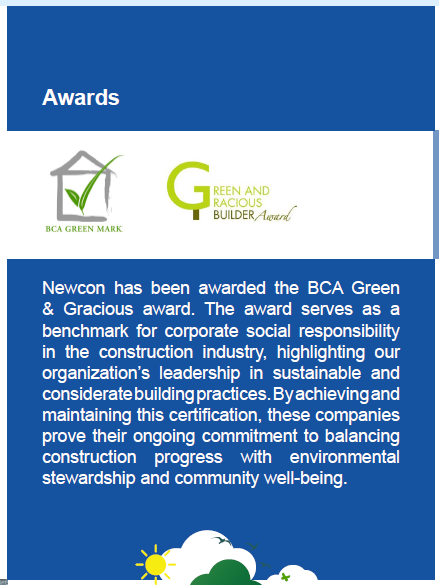 agenda through the Singapore Green Plan 2030 and a stronger regulatory push for low-carbon infrastructure, construction firms must transform how they operate. Newcon Builders acknowledges that environmental responsibility is no longer optional, it is a business imperative and a marker of long-term resilience.